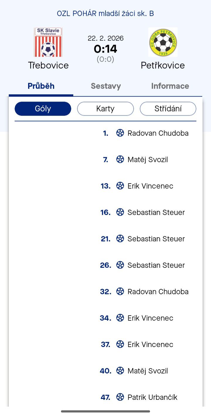 Kategorie U13 odehrála dnes svůj v pořadí třetí zápas zimní ligy v Polance nad Odrou proti týmu z Třebovic a připsala si třetí vítězství v této soutěži. Konečný výsledek vyzněl poměrně jednoznačně a na první pohled vypovídá o převaze na hřišti.