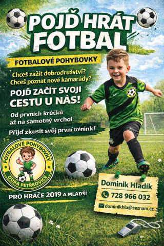 Nabíráme nové hráče do fotbalové přípravky a fotbalových pohybovek pro nejmenší děti. Nábor probíhá celoročně a můžete navštívit jakýkoliv trénink.