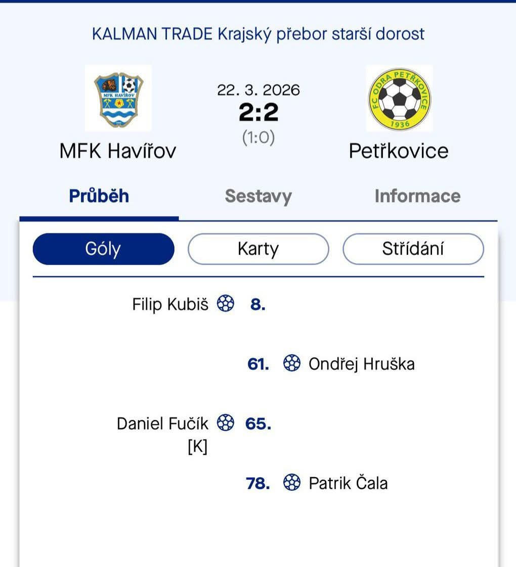 Po změně stran se hra Petřkovic výrazně zlepšila. Hosté začali více držet míč a byli aktivnější směrem dopředu. Vyrovnání přišlo po rohovém kopu, kdy se prosadil Hruška. Radost však netrvala dlouho – domácí po vlastním rohu znovu strhli vedení na svou stranu.