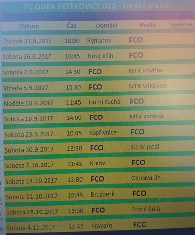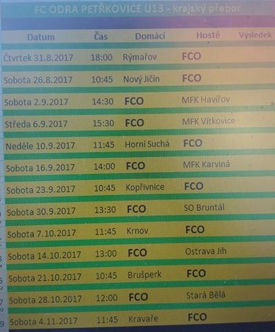 Rozpis zápasů na podzimní část sezony v Krajském přeboru