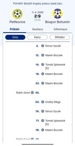 FC Odra Petřkovice U15 – Bospor Bohumín U15 2:9 (0:5)