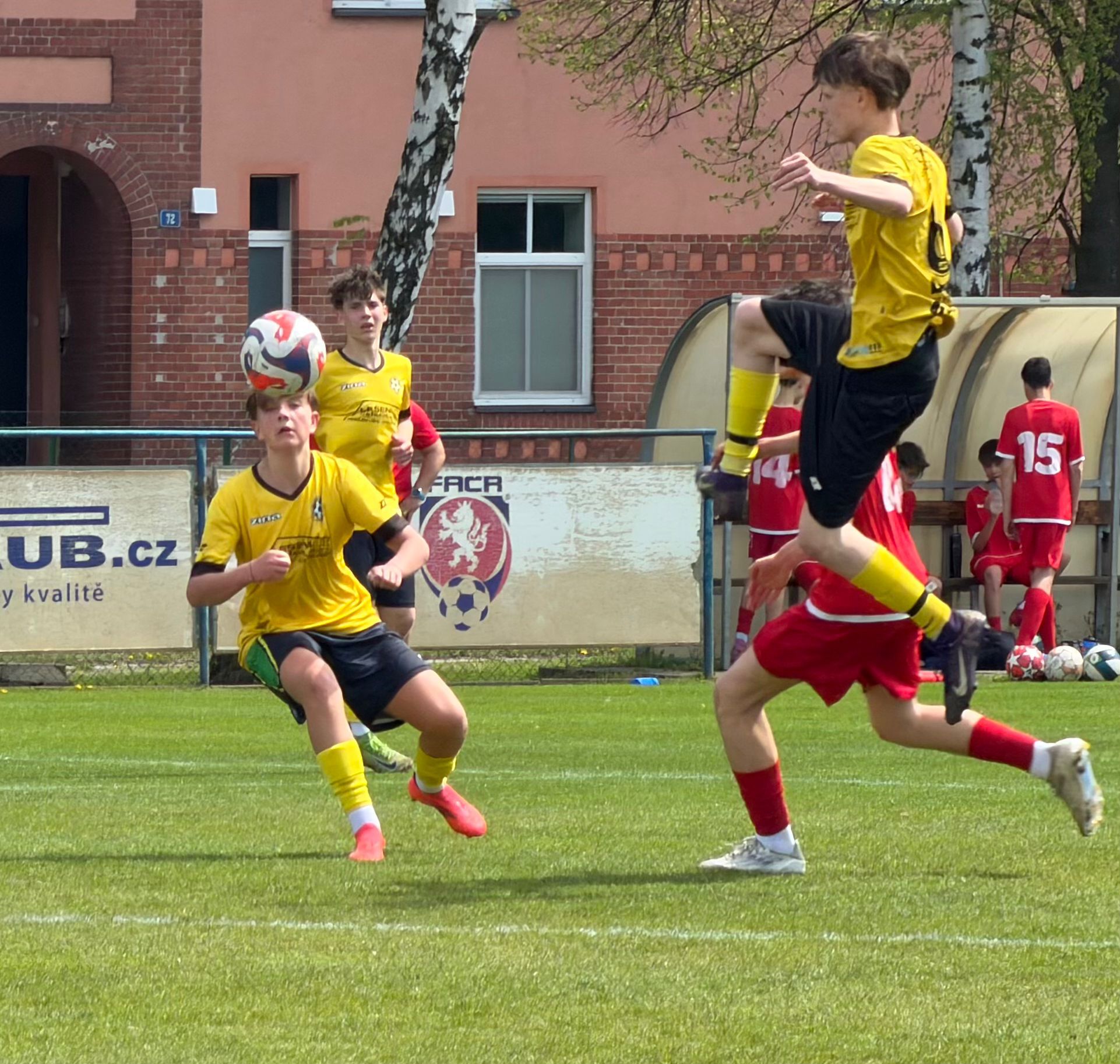 Ve 25. minutě však soupeř vyrovnal po střele z dálky a ve 36. minutě po individuální akci otočil skóre na 1:2. Ještě do poločasu se nám ale podařilo srovnat, když po centru Horáka vstřelil svůj druhý gól Schneider.