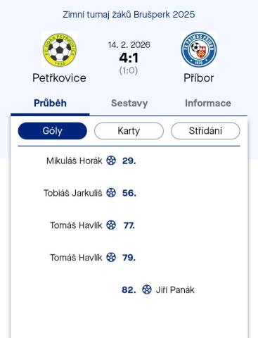 „V zápase zimní ligy, který se hraje systémem 7+1, jsme měli znovu problém dostat se do utkání. Nejsme zvyklí hrát malý fotbal a dělá nám to potíže. Strašně jsme se trápili a poločasový výsledek 1:1 tomu odpovídá. Druhý poločas odehráli kluci z U13 a bylo vidět, že i když hrají proti starším soupeřům, jsou na sedmičkový fotbal zvyklí. V zápase byli lepší, vytvořili si i šance, ale bohužel je neproměnili. I tak klukům z třináctky patří velké poděkování za to, jak do zápasu vstoupili.“