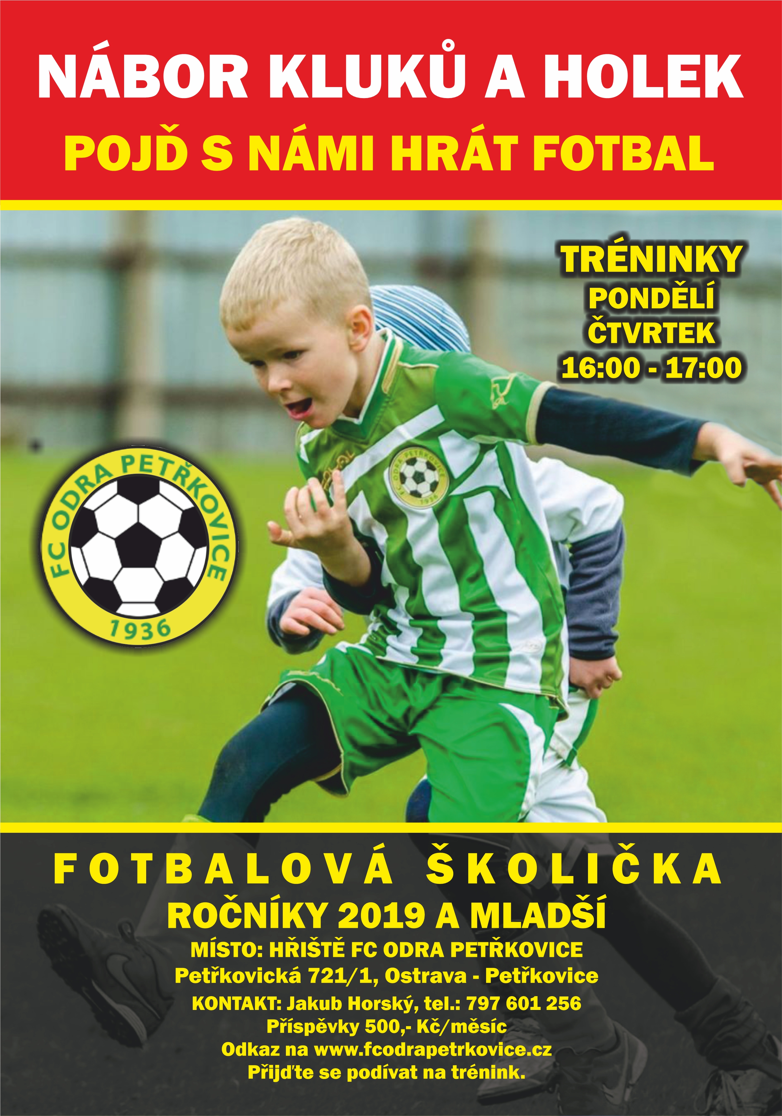 FC ODRA Petřkovice pořádá nábor do fotbalové školičky pro děti ročník narození 2019 a ml.